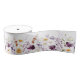 Add a romantic touch to any special occasion with this Love in Bloom floral ribbon. Featuring a delicate botanical design with soft purple, lavender, and cream flowers, this elegant ribbon is perfect for weddings, bridal showers, gift wrapping, DIY crafts, and event decorations. Made from high-quality fabric, it provides a luxurious feel while maintaining durability and flexibility for beautiful bows and accents.