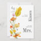 This charming game card is the perfect way to display your interactive bridal shower game. It features a unique design with a mix of elegant scripts: "Guess how many" in a small horizontal font, "Kisses" displayed vertically in a bold script, and "for the soon to be Mrs." below it. This card is fully customisable with the bride-to-be's name, and it's beautifully adorned with our spring wildflower artistry, creating a delightful piece of party decor.