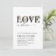 Colourful & elegant calligraphy spring flower & wildflower bridal shower invitation with text "Love is in bloom".
