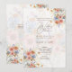 Modern wedding invitation featuring beautiful floral graphics and text template fields both sides for adding all your details including wedding ceremony, reception, rsvp, gift registry and more. Edit the qr scanning code with your own wedding website url or remove it if it is not required.