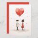 A minimalistic and heartwarming illustration of a couple holding hands, connected by a red, heart-shaped balloon that floats above them. The simple design, watercolor texture, and soft splashes of colour on a white background give a gentle, dreamlike feel to the artwork, symbolising love and togetherness in a pure, innocent way.