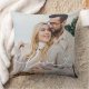 Modern and stylish custom throw pillow design features a favourite photo with a minimal white "Love" typography overlay design that includes flourish and heart details. The white coloured text can be customised. A unique gift idea for a newlywed couple or for your loved one on Valentine's Day!