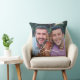Modern and stylish custom throw pillow design features a favourite photo with a minimal white "Love" typography overlay design that includes flourish and heart details. The white coloured text can be customised. A unique gift idea for a newlywed couple or for your loved one on Valentine's Day!