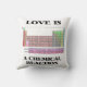 Showcase your wry chemical attitude with this pillow featuring the Periodic Table of Elements along with the saying "Love Is A Chemical Reaction". Memorable geek humour gift for anyone who has been in love!