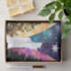 Watercolor Retriever Dog waiting: Silhouette against Full moon, Colourful with clouds and trees,