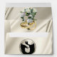 Love is All there is silhouette embrace design with black on a gold silk and white roses makes for a strong personalised wedding stationary