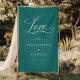 Elevate your wedding décor with this timeless, teal banner welcome sign, featuring the heartfelt phrase "Love is all you need!" Designed with a modern, minimal, and elegant handwriting font, this sign is the perfect way to greet your guests.
