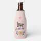 Keep the brews cold and the party hot with this charming beer bottle cooler! Adorned with an illustration of a beer glass, lush foliage, and the romantic message 'love is brewing' on a pretty pink background, this cooler adds a touch of girly flair to your bachelorette celebration. Customise the back with the bride-to-be's name and party date for a personal touch that's as cool as the drinks inside!