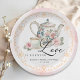 Serve up charm with this elegant “Love is Brewing” bridal shower paper plate! Featuring a vintage floral teapot, teacup, blush roses, and gold scroll detailing, this soft watercolor design makes a lovely addition to your tea party table. Personalised with the bride’s name and shower date, it’s the perfect blend of beauty and function for a stylish celebration.