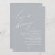Bridal shower wine tasting, beer, whisky party (love is brewing) celebration invitation card, in contemporary charm chill grey theme, modern minimalist romantic script (printed and/ or downloadable copy as email attachment invitation). Lets shower the bride, invite the guests with this perfect Invitation Card. Add your bridal shower party invitation details.