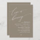 Bridal shower wine tasting, beer, whisky party (love is brewing) celebration invitation card, in contemporary charm neutral taupe brown theme, modern minimalist romantic script (printed and/ or downloadable copy as email attachment invitation). Lets shower the bride, invite the guests with this perfect Invitation Card. Add your bridal shower party invitation details.