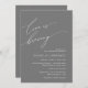Bridal shower wine tasting, beer, whisky party. Announce your happily ever after in style with our modern dark grey theme design (Love is brewing) bridal shower celebration invitation card. With its sophisticated yet playful design, this invitation is sure to set the tone for an unforgettable event. The invitation card features modern minimalist script design, adding a touch of timeless elegance to your celebration. Designed by TeeshaDerrick