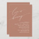 Announce your happily ever after in style with our modern contemporary rustic terracotta earthy brown theme design (Love is brewing) bridal shower celebration invitation card. With its sophisticated yet playful design, this invitation is sure to set the tone for an unforgettable event. The invitation card features modern minimalist script design, adding a touch of timeless elegance to your celebration. Designed by TeeshaDerrick