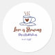 Love is Brewing brown blue bridal shower add name Classic Round Sticker