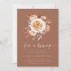 Fall in love with these romantic invitations for autumn engagement parties, coffee themed soirees, or brunch celebrations. Elegant design features a warm terracotta background graced with a bouquet of pastel earth tone boho watercolor flowers flanking a perfectly prepared caffe latte. "Love is Brewing" appears in sketched cursive lettering; personalise with your engagement party details beneath in soft off-white.