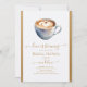 Lovely coffee theme bridal shower invitation. The coffee cup has a foam heart in it! Amazing script calligraphy, pretty gold border and a faux watercolor background adds to the look. Such a wonderful design for your coffee bridal shower. See coordinating items in our shop, Enchanted Finch.
