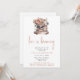 Vintage style Love is Brewing Coffee Machine Bridal Shower Invitation in brown and peach with flowers.
