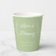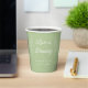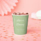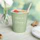 These personalised sage green paper cups are perfect for a wedding, engagement party, bridal shower or rehearsal dinner. The design features simple, modern fonts and a eucalyptus border. Customise them with your name and event date to make them one of a kind. Add them to your coffee favours for an extra personal touch!