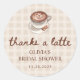 Add a sweet touch to your celebration with this Love is Brewing Gingham Coffee Bridal Shower Favor Classic Round Sticker. Featuring a watercolor latte with heart foam art, coffee beans, "Thanks a Latte" in trendy script calligraphy, and a beige gingham background, this cozy cafe inspired design brings warmth and charm to your bridal shower favors. Perfect for a fall or neutral themed event, these stickers pair beautifully with matching “Love is Brewing” invitations, gift tags, and decor from the collection.