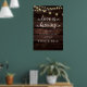 Love is Brewing, Modern Rustic, Wedding Rehearsal Dinner Welcome Poster, in rustic brown wooden background, cottage string lights themed.