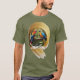 I give wanted to give this a 4 instead of a 5 because these Basic DARK T0shirts run unexpectedly SLIM or Narrow. Which is great if you do not have a potbelly, but I have a paunch. It isn't the shirt's fault that I've got a beer belly. The design and shirt itself is a quality cotton shirt. The color is more of a deep purple, but still a very pretty color. The Basic DARK T-shirts run a bit SLIMMER than the Basic Ts. The neck is a fraction narrower (or seems to be narrower) also. I'm a paunchy middle-aged woman and my neck is 12 inches (31cm) thick and the neckline fell about the same as in the photo of the man, and I had the desire to tug it a bit. So if you're a thick necked man or like loose shirts, be aware these are slimmer shirts. Once I get rid of my lockdown paunch it'll look great. The shirt washed well in cold water with no apparent bleeding. We don't have a dryer, so it hung dry. Did not shrink. Love the colors and the design. The design looks smaller on my shirt than it does on the model on-line. But still, it looks good on the shirt. The printing looks as it does on the model, just the size seems fractionally smaller. Washed garment in cold water, hung dry and design appeared unaffected.