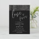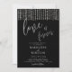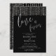 A simple, modern, elegant, formal and whimsical wedding invitation template featuring a black background, a curtain of white diamonds (simulated, not real diamonds!), typography in white, as well as the title "love is forever" in modern calligraphy. A chic, timeless design that combines traditional, formal wedding design with modern script calligraphy and a trendy layout.