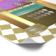 50th Anniversary, golden retro jukebox welcome poster with music notes and 50's theme. Now and then, oval framed full colour photos and editable text.