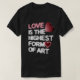 Express your passion with this unique ‘Love is the Highest Form of Art’ t-shirt, featuring an inspirational design that celebrates love as the ultimate art form. Perfect for art enthusiasts, romantics, and anyone who values self-expression, this shirt adds a creative touch to any wardrobe. Available in various sizes and colours, it's ideal for everyday wear or as a thoughtful gift for loved ones