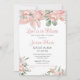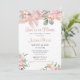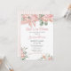 Love in bloom pink floral and bow bridal shower invitation with complimenting blush pink stripes on reverse side of printed card. Completely printed invitation, the ribbon is printed and not a real element. Personalise text and fonts as preferred.