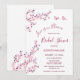 This "Love is in bloom" bridal shower invitation features pretty pink cherry blossoms and two butterflies on a white background.