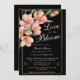 Love is in Bloom Pink Cherry Blossom on Black Bridal Shower Invitation - A beautiful, unique, elegant and modern bridal shower invitation. Featuring a bouquet of pink cherry blossom branches against a sleek, black background with a faux gold frame. A combination of script calligraphy and elegant block font, this chic bridal shower invitation exudes sophistication, and timeless elegance. Set the tone for an unforgettable time with friends and family showering the bride-to-be. Edit this bridal shower invitation template with your own event details. Make it easy for your guests to view your wedding registry by adding the QR Code in the back. Also available as an instant digital download, perfect for sending via email, text or social media.