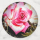 Medium design front features a white background to image of two, pink roses intertwined.