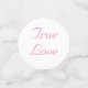 Reverse displays a short, customisable message in pink lettering against a white background. Designed to coordinate with the "Love is in Bloom Wedding Suite."