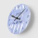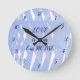 Personalised clock features Love is in Our Home text in Blue Geometric.