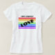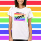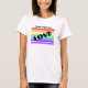 Love is Love! This "Love equals LOVE" tee shirt proudly proclaims Love in bold black text across bright rainbow stripes. Love is Love and unconditional.