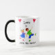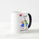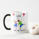 A truly unique mug. When it’s cold, it’s just a simple black mug. When you add any hot beverage (water, tea, coffee, etc.), your handpainted paper collage image comes to life in vibrant colours. 11 oz. Handwash only.
