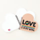 LGBTQ pride month notebook featuring the caption "love is never wrong" in black all caps fonts decorated with a little rainbow heart and a colourful stripe on a peach pink background.