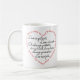 This attractive mug features a short version of 1 Corinthians 13:4 "Love is patient, Love is kind...". This unique mug features the words of the bible verse in a heart shape in addition to the words inside the heart.