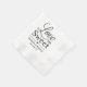 Wedding napkins feature a "Love is Sweet" black text design with heart divider and custom monogram design that includes the bride and groom names and wedding date.