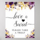 Love is Sweet Calligraphy Script Purple Gold Floral Dessert Bar Sign Poster