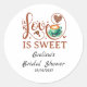 Add a sweet and stylish finishing touch to your bridal shower favors with this "Love Is Sweet Coffee Heart Calligraphy Classic Round Sticker". Designed with elegant handwritten script and a charming coffee heart motif, this romantic sticker is perfect for modern rustic and café themed bridal shower celebrations. Featuring warm terracotta tones and cozy coffee-inspired details, this round label is ideal for sealing envelopes, decorating favor bags, wrapping chocolate treats, coffee bean jars, candles, or mini thank you gifts for your guests.