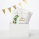 Create elegant personalised wedding favour bags with a thank you message, Love is Sweet saying, and an emerald green watercolor eucalyptus foliage and agate style pattern. Template text makes it easy to customise the favour bags with names and date. You can also type your own thank you message.