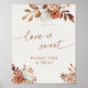 Elegant calligraphy terracotta and cream bridal shower favours sign.