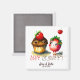 Funny watercolor illustration couple in love: red strawberry and maffin with quote Love is sweet