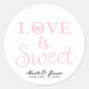 LOVE IS SWEET Pink & White Modern Wedding Favour Classic Round Sticker