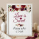 Love is Sweet Please take a treat - Burgundy Floral Wedding Sign Poster.