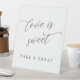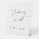 Add a charming touch to your dessert or candy table with this Love Is Sweet tabletop pedestal sign. Perfect for weddings, bridal showers, engagement parties, or any celebration, this design helps guide guests while enhancing your décor. Display it beside your treats to create a warm, inviting, and stylish focal point. Easily customize the text, colors, or fonts to match your event theme—romantic, rustic, modern, elegant, or whimsical.