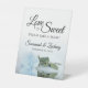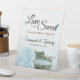 This pretty tabletop sign is perfect for a treat table at your wedding reception. It features a simple yet elegant design with a photo of a single long-stemmed light powder blue or dusty blue coloured rose reflecting in a pool of water with waves and ripples. The sign reads: Love is Sweet, please take a treat! There is room for your names and the wedding date below.