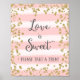 Poster print for love is sweet wedding sign with faux gold glitter design and pink stripes watercolor background.