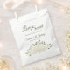These beautiful treat bags are perfect for a treat table at your wedding reception. They feature a lovely boho chic design with a cluster of hand painted watercolor roses in shades of ivory, white, and cream. The elegant sage green coloured script text reads "Love is sweet please take a treat" with room for the names of the couple and wedding date.